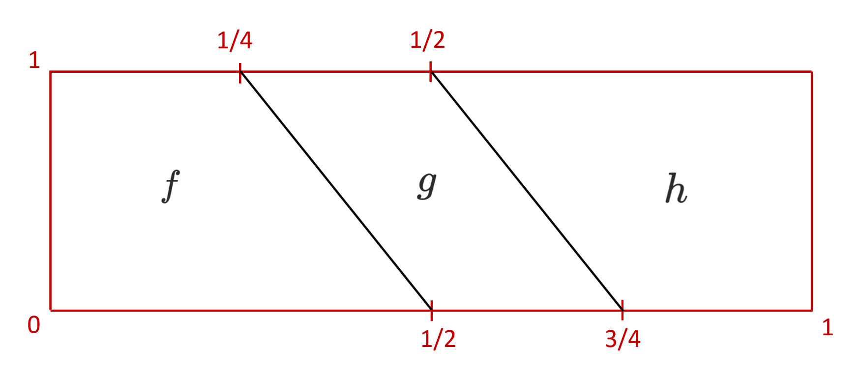It corresponds to the map `[0,1] \to X` defined by `f(t)` if `t \leq 1/2`